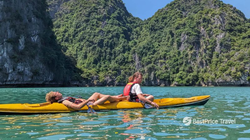 The afternoon offers moments to experience Halong up close - perhaps exploring a hidden cave, gliding by kayak through calm waters, or simply relaxing on deck as the breeze carries the scent of the sea.