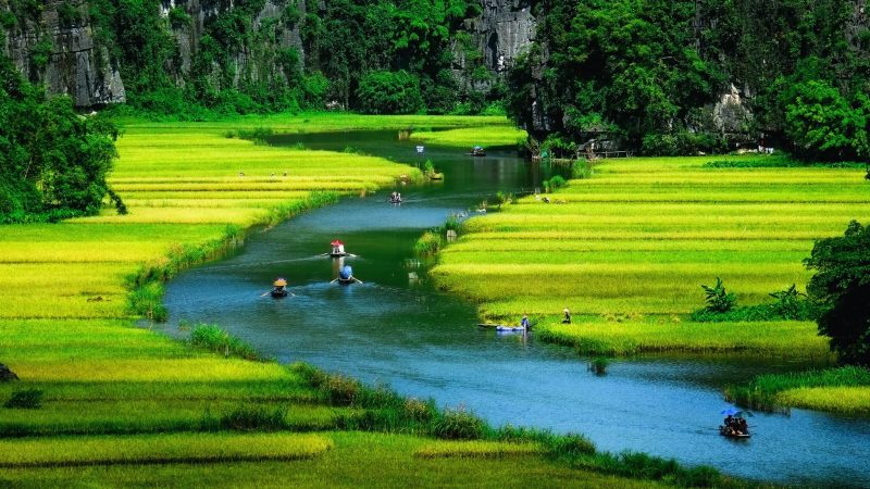 From history to nature, you continue to Trang An, a UNESCO-listed landscape often described as “Halong Bay on land.” Gently drifting by boat through a network of rivers, caves, and hidden valleys, you pass beneath towering cliffs and through echoing grottoes, where the only sounds are flowing water and birdsong. The experience is peaceful, immersive, and deeply restorative.